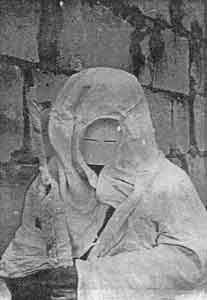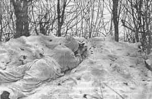 Снайпер - это охотник, а охотник должен быть невидим. Тот из снайперов, кто пытается работать незамаскированно, почти сразу становится мишенью для противника. Позиции для работы снайпера приходится выбирать и оборудовать буквально под носом у неприятеля, подчас на неудобных, открытых и, казалось бы, непригодных для этого местах. Поэтому маскировка позиции должна быть безукоризненной, выглядеть естественно и не выделяться среди окружающего ландшафта. Зимняя и летняя маскировки различны. Зимой маскироваться легче, потому что основные цвета зимой - черный и белый. Белого, разумеется, больше, поэтому и снайпер надевает на себя все белое. Белым, под цвет снега, должен быть маскхалат с белым капюшоном. Винтовка также должна быть обмотана чем-нибудь белым. Лучше всего для этих целей подходит обыкновенный медицинский бинт. Бинтом обматываются также оптический прицел и ремень. Телесный цвет лица и кистей рук выдал не одного снайпера, поэтому на лицо надевается матерчатая или бумажная белая маска с узкими прорезями для глаз (фото 153). Эти узкие прорези играют солнцезащитную роль при работе днем под ярким солнцем среди белого снега. Такая мощная засветка буквально слепит глаза. Прицельно стрелять в таких условиях невозможно.