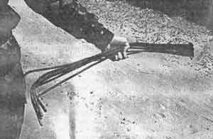 Для маскировки амбразура закрыта снаружи рваным листом резины, в котором прорезано небольшое отверстие для наблюдения. При необходимости эта "шторка" за привязанную к ней бечевку поднимается вверх и открывает амбразуру для стрельбы. Принцип этого переносного укрытия представлен на фото 183, 184. Все это нехитрое устройство обычно хранится где-нибудь в спецназовском гараже и при необходимости ставится на позицию под прикрытием дымовой завесы или при каком-либо отвлекающем маневре. "Колесо" (так его и называют) не привлекает внимания и надежно защищает от пуль (фото 185).