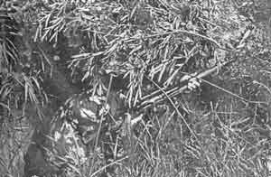 Фото 160. Полностью замаскированная позиция. Амбразура для обзора и стрельбы из винтовки