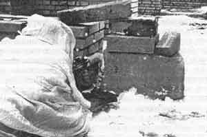 Такие позиции подчас маскируются настолько удачно, находясь в самом эпицентре событий, среди дыма, грохота и неразберихи, в грудах камней и строительных обломков, что остаются незамеченными ни чужими, ни своими, когда фронт перекатывается через них несколько раз в ту или иную сторону Секрет несложен - снайперы наблюдают за обстановкой в перископ, выставленный наружу, а для стрельбы открывают "форточки" - каменные заслонки амбразур, снаружи абсолютно неразличимые среди строительных нагромождений, под которыми скрыта позиция. После выстрела заслонка мгновенно закрывается. Так делали и наши в Сталинграде, и немцы в Кенигсберге. В качестве такой заслонки и русские, и немцы использовали какой-либо строительный обломок, который при необходимости стрельбы палкой из укрытия отодвигали или отваливали от амбразуры, а по окончании стрельбы притягивали к амбразуре за привязанную к этому предмету проволоку. Амбразур с заслонками делается несколько для обеспечения секторов обстрелов в разные стороны. Стрельба ведется из глубины позиции, чтобы дым и пламя не выходили наружу. Очень часто такие закрытые позиции имели сообщение с подвалами близлежащих зданий.