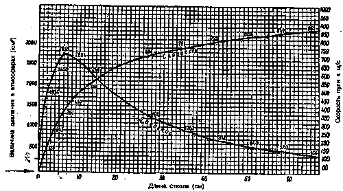 Схема 111. Изменение давления газов и нарастание скорости пули в стволе винтовки образца 1891-1930 гг.