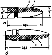 а - легкая пуля; б - тяжелая пуля: