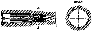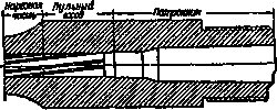 Ствол представляет собой трубу, внутренняя полость которой называется каналом ствола. Канал ствола (схема 130) по своему устройству делится на следующие части: патронник, соединительный конус (пулъный вход) и нарезная часть. Каналы стволов в образцах по устройству примерно одинаковы и различаются лишь очертанием патронника, числом и формой нарезов.