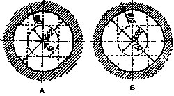 Врезание оболочки пули будет тем легче, чем уже поля (выступающие части) нарезов. Однако при слишком узких полях ширина их может оказаться настолько малой, что они не будут удовлетворять пределам прочности и будут разрушаться. Практически берут ширину поля, равной примерно половине ширины нареза (см. схему 133). Например, для винтовок и карабинов Мосина ширина нареза 3,81 мм, ширина поля 2,17 мм.