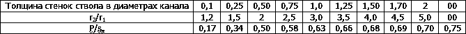 Инженерно-расчетным путем (табл. 43) было установлено, что при давлении в канале ствола, равном 3/4 предельной упругости металла, даже сколь угодно большая толщина стенок не обеспечит ствол от появления остаточных деформаций на его внутренней поверхности. Опытным путем установлено, что увеличивать толщину стенок ствола, изготовленного из оружейной углеродистой стали, до величины, превышающей 1 1/2 калибра, нецелесообразно, так как дальнейшее увеличение толщины стенок лишь незначительно увеличивает прочность ствола и в то же время повышает его вес.
