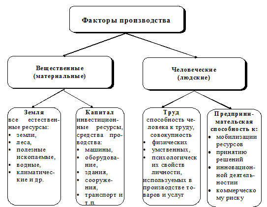 Экономическая наука традиционно относит к факторам производства землю, труд и капитал (рисунок 2.1).