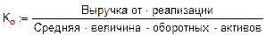 Коэффициент оборачиваемости оборотного капитала – КО показывает скорость оборота материальных и денежных ресурсов предприятия за анализируемый период или сколько рублей выручки снимается с каждого рубля данного актива; рассчитывается как отношение выручки продукции за анализируемый период времени к средней за период величине оборотных активов: