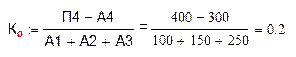 Пример 5. Определить значение коэффициента обеспеченности собственными средствами, если постоянные пассивы = 400 у. е., наиболее ликвидные активы = 100 у. е., быстрореализуемые активы =150 у. е., медленнореализуемые активы = 250 у. е., труднореализуемые активы = 300 у. е.