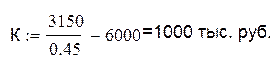 Хозяйствующий объект имеет годовую чистую прибыль 3150 тыс. руб. У него высокий рыночный рейтинг, и цена фирмы на рынке составляет 6000 тыс. руб. Размер ставки ссудного банковского процента равен 45 % годовых.
