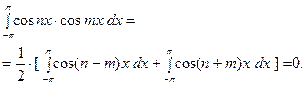 Итак, какие бы различные функции из системы (3) ни взять, интеграл от их произведения по промежутку