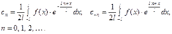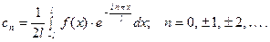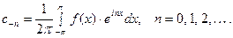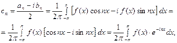 Полученный ряд и является рядом Фурье в комплексной форме. При этом коэффициенты данного ряда вычисляются по формулам: