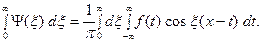 Формулу (7) называют интегральной формулой Фурье, а стоящий в её правой части интеграл - интегралом Фурье. Если воспользоваться формулой для косинуса разности, то формулу (7) можно записать в виде