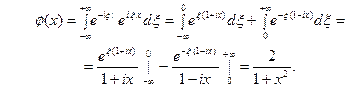 ПРИМЕР 3. Преобразование Фурье может быть использовано при решении некоторых интегральных уравнений, т.е. уравнений, в которых неизвестная функция входит под знак интеграла. Рассмотрим, например, уравнение