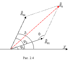 Для сложения колебаний воспользуемся методом векторной диаграммы. Как видно из рис. 2.4, согласно теореме косинусов амплитуда результирующего колебания будет равна