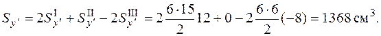 , проходящую через центр тяжести прямоугольника II. В этом случае статический момент фигуры II равен нулю. Чтобы найти статические моменты треугольников, умножаем площадь фигуры на координату ее центра тяжести в системе