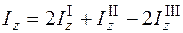 Для определения момента инерции каждой из фигур I, II и Ш используем формулы изменения моментов инерций при параллельном переносе осей (5.16), (5.17). Моменты инерции прямоугольника II и треугольников I и Ш относительно собственных центральных осей