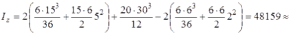 , складывая (или вычитая) моменты инерции составляющих фигур: