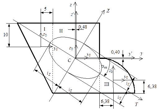 Найдем радиусы инерции относительно главных центральных осей по (5.10) и построим эллипс инерции.