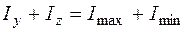 Для проверки вычислений удобно использовать следующее свойство: сумма моментов инерций относительно двух любых пар ортогональных осей есть величина постоянная. Тогда должно быть