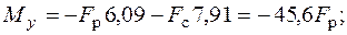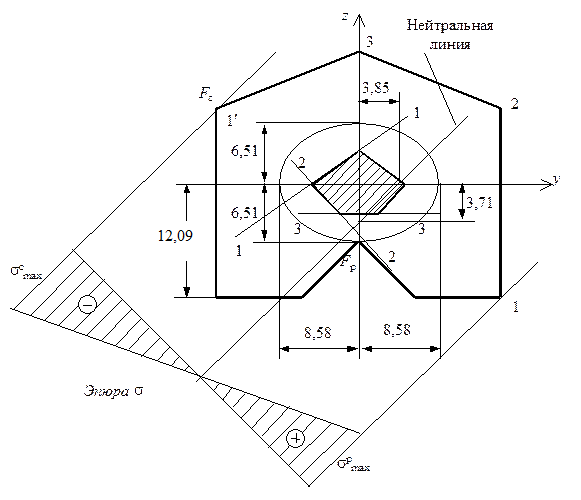 Рис. 5.22. Эпюра напряжений от действия сил F р и F с и ядро сечения |