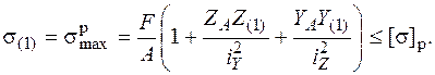 Подставим в условие прочности координаты опасной точки 1 в главных осях, вычислив их по формулам (5.19) или измерив на рисунке, выполненном в масштабе,