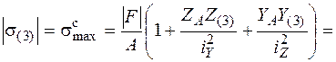 Для найденного значения допускаемой нагрузки необходимо убедиться, что условие прочности выполняется и в точке 3, которая дальше удалена от нейтральной линии и в которой действует сжимающее напряжение. Для определения напряжения в точке 3 подставим в формулу (5.9) координаты этой точки
