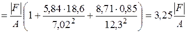 Рис. 5.24. Эпюра напряжений от силы F и ядро сечения