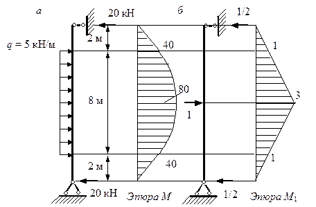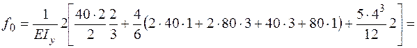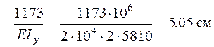 Проверим прочность по деформированному состоянию. Найдем максимальный прогиб в середине пролета, перемножая эпюры М от поперечной нагрузки и М 1 от единичной силы (рис. 6.7, б):