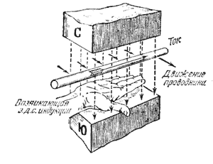 Индукционный электрический ток в проводнике, возникающий при изменении магнитного потока, направлен таким образом, что его магнитное поле противодействует изменению магнитного потока.