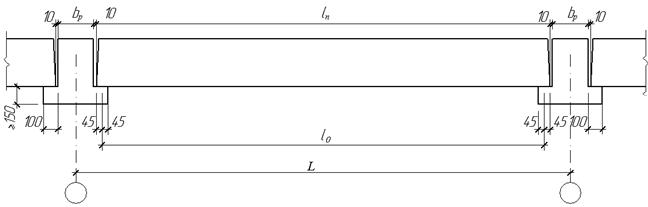 Расчетный пролет плиты перекрытия равняется расстоянию между центрами площадок опирания. Величину l0 можно определить по рисунку 2.2.3.