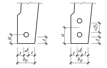 Согласно конструктивным требованиям для сборных элементов, эксплуатируемых в закрытых помещениях величину защитного слоя (t) для продольной рабочей арматуры можно принять не менее 15мм и не менее диаметра рабочей арматуры. Минимальное расстояние между стержнями в свету при горизонтальном положении при бетонировании для нижней арматуры необходимо применять не менее 25мм и не менее диаметра. Схема размещения арматуры в одном ребре указана на рисунке 3.5 (а – в каждом ребре один стержень, б – в каждом ребре 2 стержня).