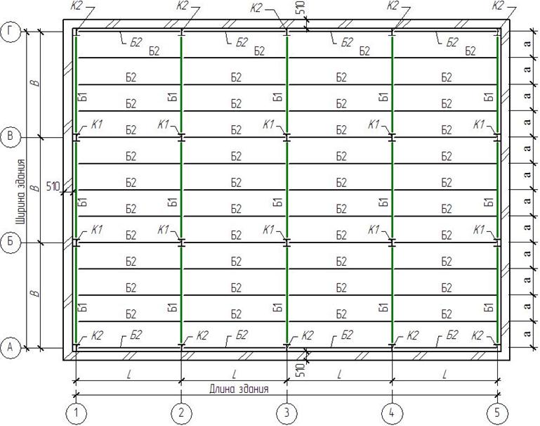 Рисунок 3.1 – Схема размещения несущих элементов стального каркаса