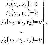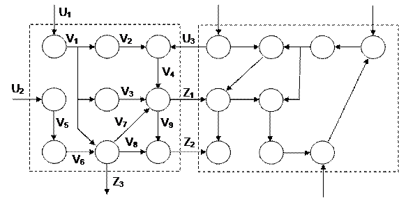 Выделим в соответствии с блочно-иерархическим подходом в структуре объекта некоторые подмножества элементов и назовем их блоками (на рисунке показаны штриховыми линиями). Пусть состояние каждой связи характеризуется одной фазовой переменной