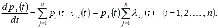 систему обыкновенных дифференциальных уравнений (6) с переменными (в общем случае) коэффициентами. Эти уравнения называются уравнениями Колмогорова.