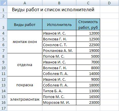 1. В Microsoft Excel 2007 оформите таблицу (рис. 39).