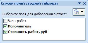 5. Выберите поля Исполнитель и Стоимость работ (рис. 40).