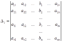 Di – определитель матрица, полученный из матрицы А путем замены i -го столбца вектором b.