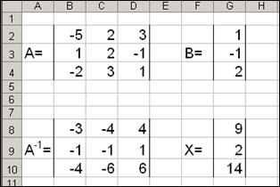 Таким образом, вектор неизвестных вычисляется по формуле: Х=А-1·В.