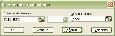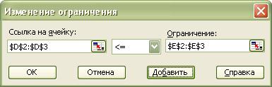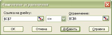 После ввода каждого ограничения нажимаем кнопку Добавить. После ввода последнего ограничения нажимаем кнопку OK. И диалоговое окно Поиск решения принимает следующий вид: