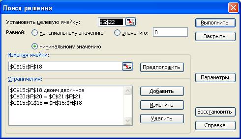 xij – это двоичные переменные, которые могут принимать только два значения: 1, если работник i назначается на выполнение работы j и 0, если не назначается.