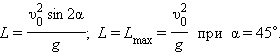 Приведем здесь некоторые формулы, описывающие движение тела, брошенного под углом α к горизонту.