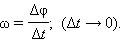 Угловой скоростью ω тел в данной точке круговой траектории называют предел (при Δ t → 0) отношения малого углового перемещения Δφ к малому промежутку времени Δ t: