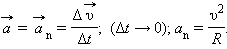 определяется в каждой точке круговой траектории величинами нормального и касательного ускорений (рис. 1.6.3).