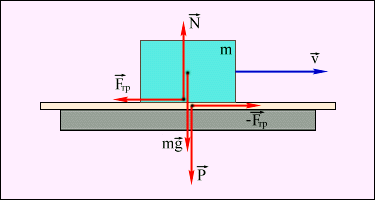 Рисунок 1.13.3. Силы трения при скольжении (υ ≠ 0). – сила реакции опоры, – вес тела, . |