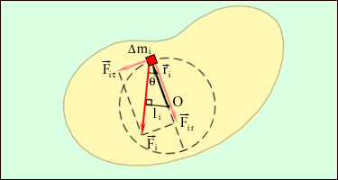 Рисунок 1.23.8. Касательная и радиальная составляющие силы действующей на элемент Δ m i твердого тела. |