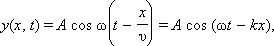 Смещение y (x, t) частиц среды из положения равновесия в синусоидальной волне зависит от координаты x на оси OX, вдоль которой распространяется волна, и от времени t по закону:
