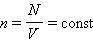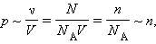 где N – число молекул в сосуде, N A – постоянная Авогадро, n = N / V – концентрация молекул (т. е. число молекул в единице объема сосуда). Объединяя эти соотношения пропорциональности, можно записать: