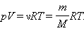 связывающее давление газа с его температурой и концентрацией молекул, получено в §3.2 для модели идеального газа, молекулы которого взаимодействуют между собой и со стенками сосуда только во время упругих столкновений. Это соотношение может быть записано в другой форме, устанавливающей связь между макроскопическими параметрами газа – объемом V, давлением p, температурой T и количеством вещества ν. Для этого нужно использовать равенства