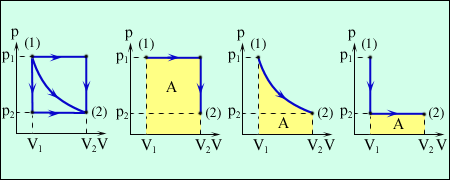Процессы, изображенные на рис. 3.8.2, можно провести и в обратном направлении; тогда работа A просто изменит знак на противоположный. Процессы такого рода, которые можно проводить в обоих направлениях, называются обратимыми (см. §3.12).