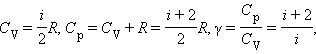 Из этой теоремы следует, что молярные теплоемкости газа C p и C V и их отношение γ могут быть записаны в виде